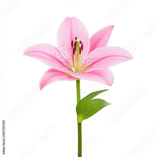 Naklejka premium A beautiful pink lily blooms gracefully against a white backdrop, showcasing...
