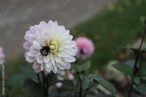 Obraz premium a beautiful pink, white dahlia flower on a dark background.