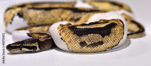 © alberto, Obraz premium A beautiful python regius snake with selective focus