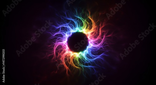 © Thiago, Fototapeta premium A Beautiful Rainbow Colored Energy Core Surrounded by Abstract Light Trails and Dark Backdrop