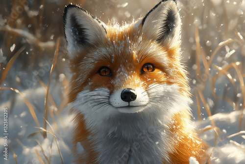 Obraz premium a beautiful red fox in the snow, with piercing eyes and fluffy fur.