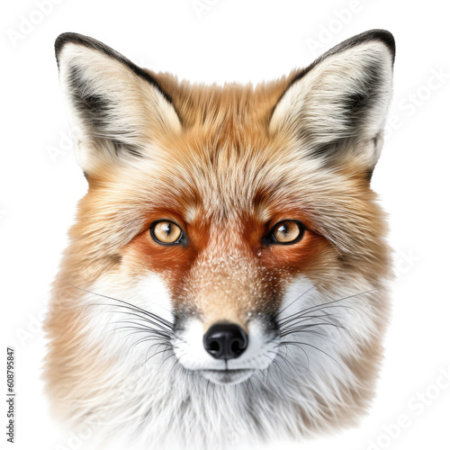 Fototapeta premium a Beautiful Red Fox Portrait, sly and crafty, fluffy, Wildlife-themed, photorealistic illustrations in a PNG, cutout, and isolated. Generative AI