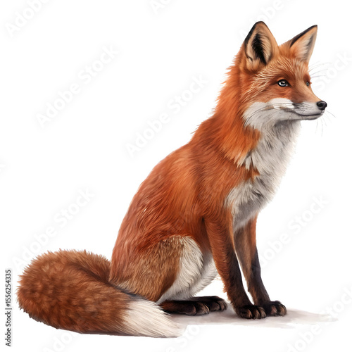 © Lamia, Fototapeta premium A beautiful red fox sits serenely, isolated on transparent background