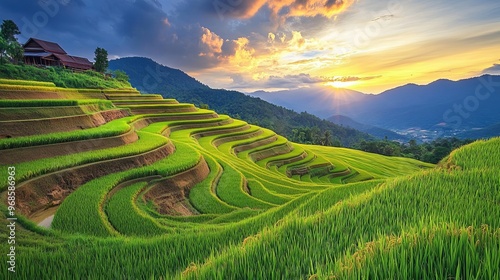 © Yusif, Fototapeta premium A beautiful rice field viewed from the Wat Phuket viewpoint in Thailand.