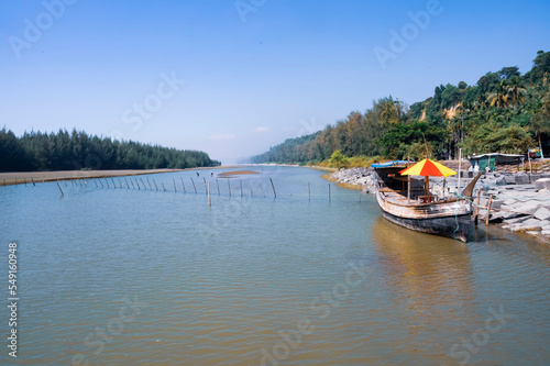 Fototapeta premium A beautiful river, a boat in the river, natural beauty