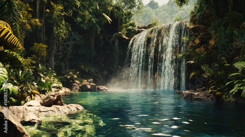 © Adip, Fototapeta premium A beautiful scenic view of a majestic waterfall in nature