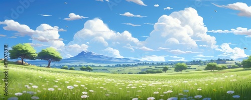 © Murda, Fototapeta premium A beautiful, serene landscape with a large field of grass and a few trees