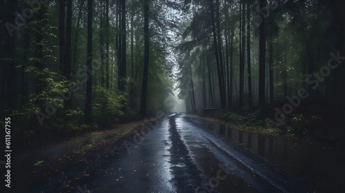 Fototapeta premium a beautiful shot of a forest surrounded by trees in the forest during the mist Generative AI, AI Generated