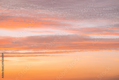Fototapeta premium A beautiful sky tinted by the sun leaving vibrant shades of gold, pink, blue and multicolored. Clouds in the twilight evening and morning sky. Cloudy sky background in the evening and during the day.