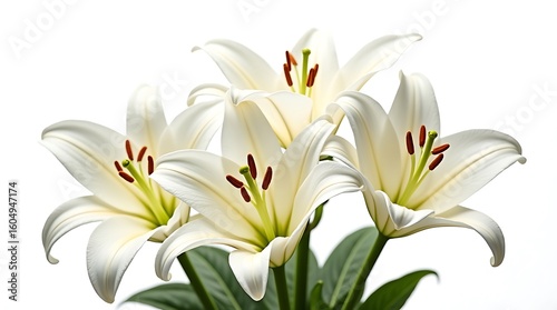 Naklejka premium A beautiful spring bouquet of white tulips and lilies, showcasing delicate...