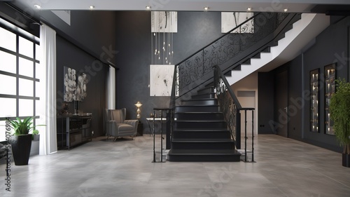 Fototapeta premium a beautiful staircase in the hall, black design