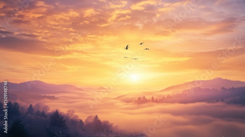 © Oleg, Obraz premium A Beautiful Sunrise Over a Scenic Place
