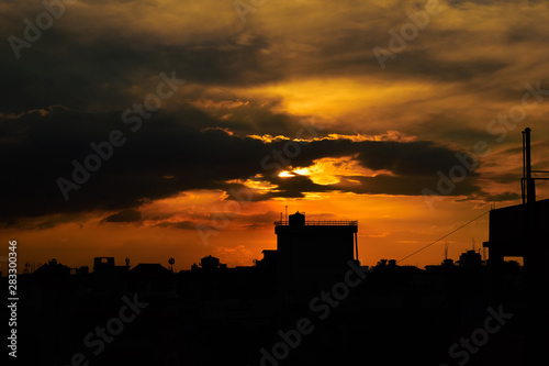 © Amit, Fototapeta premium A beautiful sunset in a city!!!!!