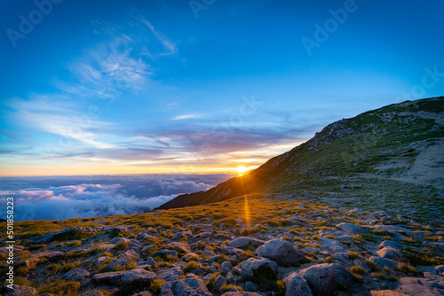 © 一樹 濱崎, Obraz premium A beautiful sunset on the top of the mountain.