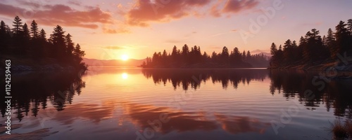 © Hugnaka, Fototapeta premium A beautiful sunset over a lake on Valentine's Day, serene, sky, lake