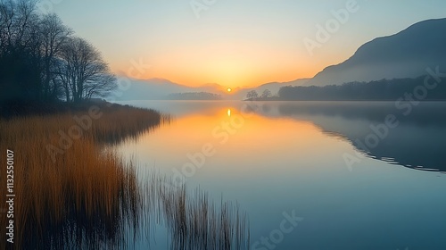 © Meffl, Fototapeta premium A beautiful sunset over a lake with a reflection of the sun on the water