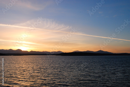 © Wandering Bear, Fototapeta premium A beautiful sunset over the mountains of southern Vancouver Island as seen from Valdes Island