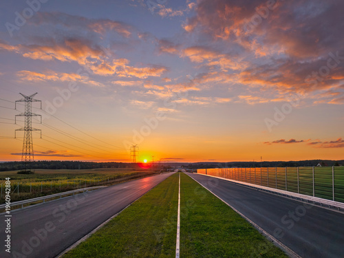 © Patryk Kosmider, Naklejka premium A beautiful sunset over the new highway in Poland.