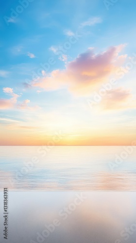 © Sangsung, Obraz premium A beautiful sunset over the ocean with a few clouds in the sky