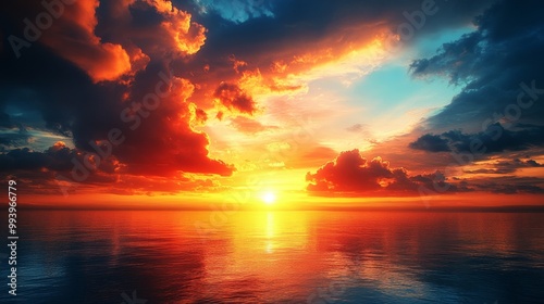 © Tyoma, Naklejka premium A beautiful sunset over the ocean with a few clouds in the sky