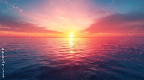 © Tyoma, Obraz premium A beautiful sunset over the ocean with a pink and orange sky