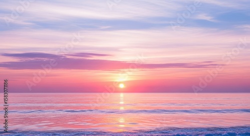 © MdMostafizur, Obraz premium A beautiful sunset over the ocean with pink and purple clouds