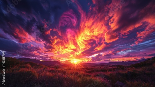 © PooHPiN365, Fototapeta premium A beautiful sunset with a large orange cloud in the sky. Generative AI