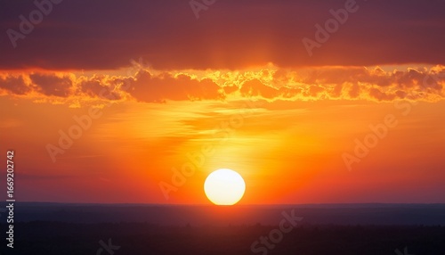 © Mikael, Obraz premium a beautiful sunset with a large sun in the sky
