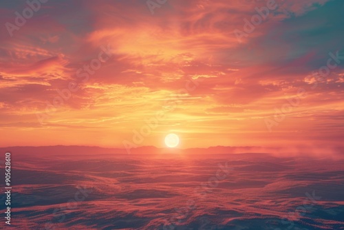 Fototapeta premium A beautiful sunset with a large sun in the sky. The sky is filled with clouds and the sun is shining brightly