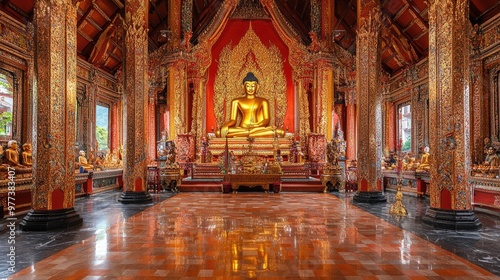 Fototapeta premium A beautiful Thai temple with a golden Buddha.