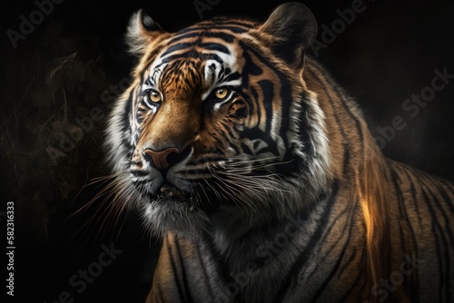 © ChaoticMind, Fototapeta premium A beautiful tiger in its natural environment Generative AI