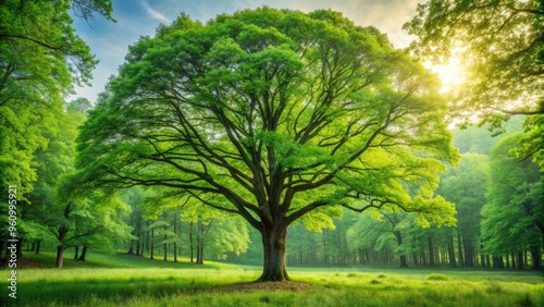 Fototapeta premium A beautiful tree standing tall in a lush green forest, Nature, environment,...