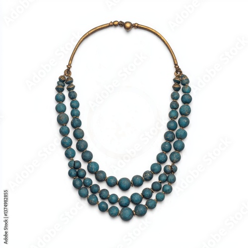 © CoreVisuals, Obraz premium A beautiful turquoise beaded necklace with multiple strands, showcasing intricate craftsmanship and elegant design.