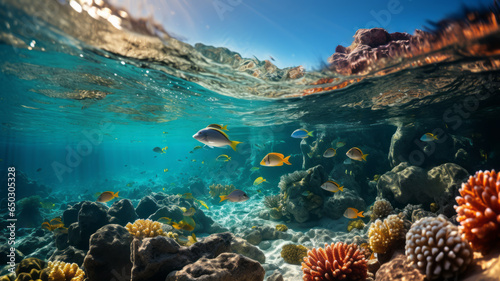 Fototapeta premium A beautiful underwater scenery full of fish and coral reefs.