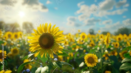 Fototapeta premium a beautiful view of sunflower in the farm of sunflowers