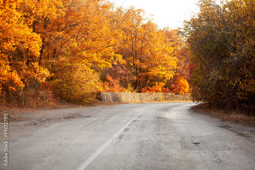 © Вероника Зеленина, Obraz premium A beautiful view of the nature, mountain, full forest with orange leaves