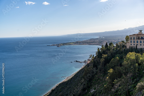 © oybekostanov, Fototapeta premium A beautiful view of the ocean and a city skyline