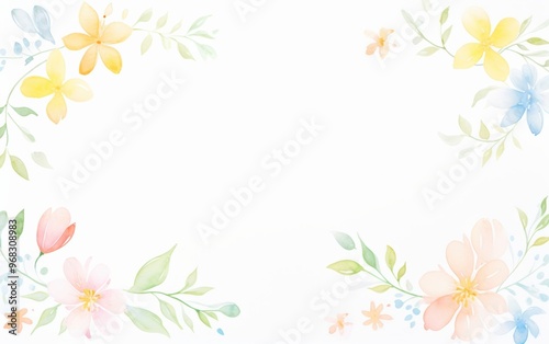© GenBy, Naklejka premium A beautiful watercolor floral border with soft pastel colors, perfect for invitations, greeting cards, and print design.