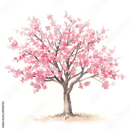 © Sukifli Dakheng, Obraz premium A beautiful watercolor painting of a cherry blossom tree in full bloom