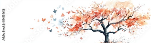 © Newstep, Fototapeta premium A beautiful watercolor painting of an autumn tree shedding its colorful leaves, symbolizing change and the beauty of nature.