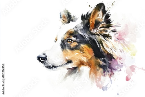 © Fotograf, Fototapeta premium A beautiful watercolor portrait of a dog's face, great for pet-related themes or artistic designs