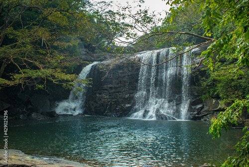 Fototapeta premium A beautiful waterfall in the middle of the forest located in Srilanka