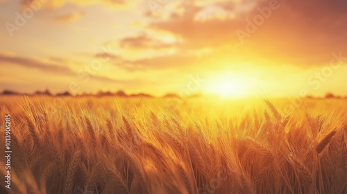 © kept, Obraz premium A beautiful wheat field illuminated by the warm glow of the setting sun.