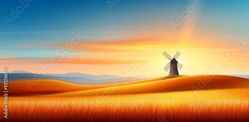 Fototapeta premium A beautiful wheat field with a windmill in the background