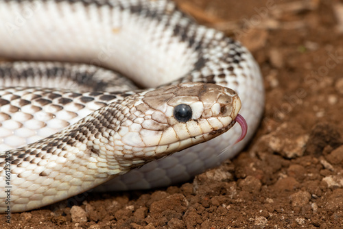 Obraz premium A beautiful white sided black ratsnake (Elaphe obsoletus obsoletus). A non-venomous colubrid snake native to the United States