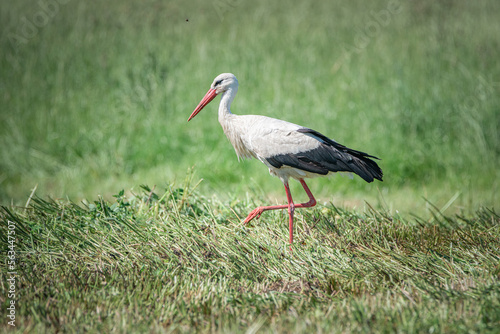 Fototapeta premium A beautiful white stork in a field on a summer day.