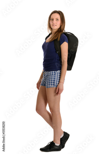 © czamfir, Fototapeta premium a beautiful woman tourist with luggage isolated on white backgro