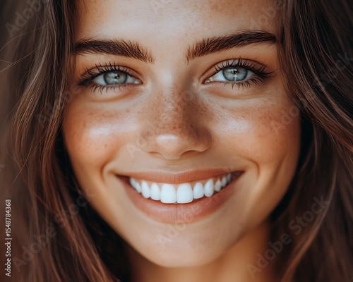 © Matchaa, Fototapeta premium A beautiful woman with light eyes and a warm smile radiates joy