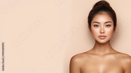 © Berkah1789, Obraz premium A beautiful woman with perfect makeup is gazing at the viewer