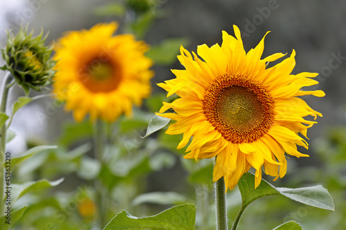 © puteli, Fototapeta premium A beautiful yellow sunflower in field